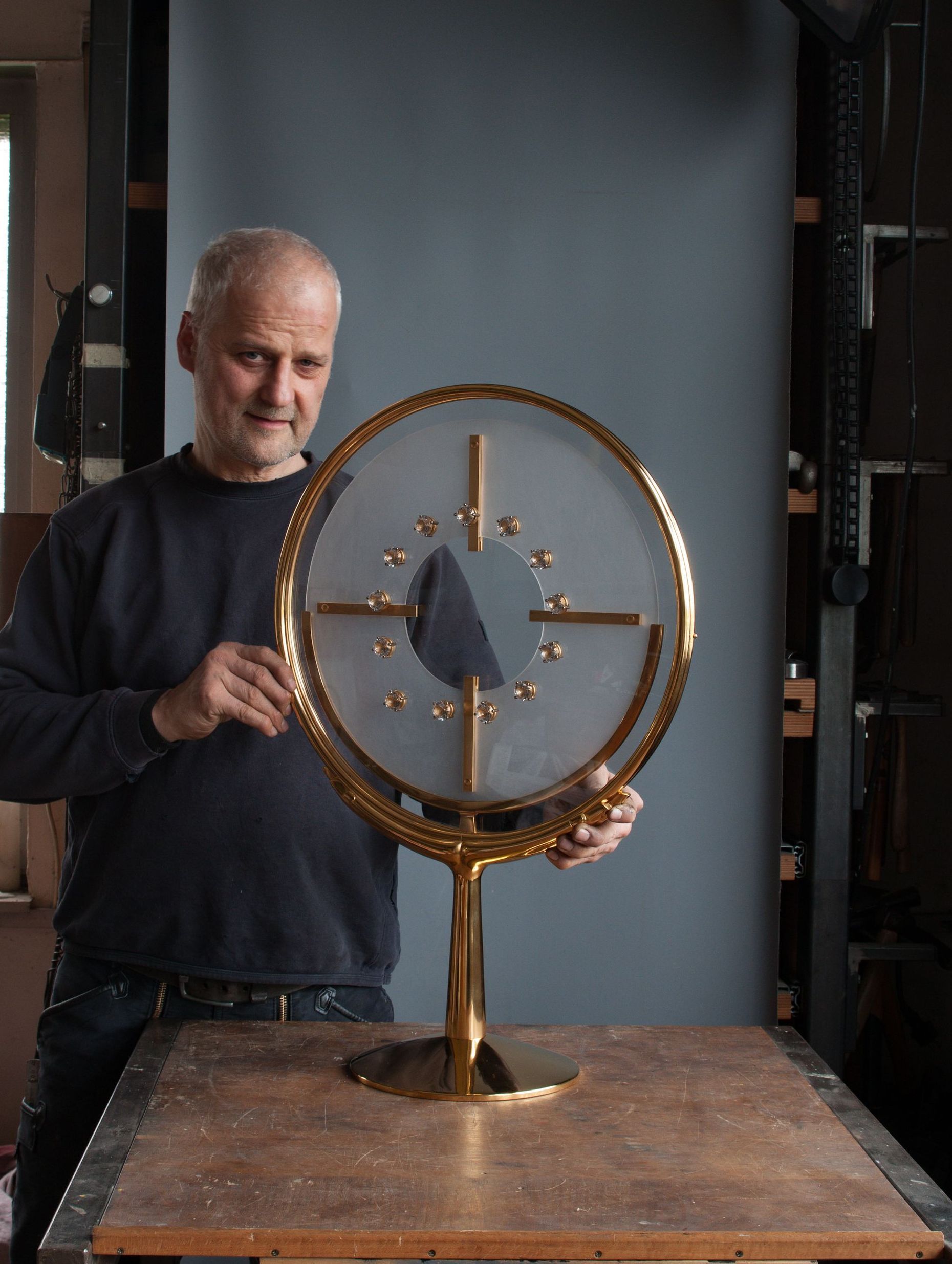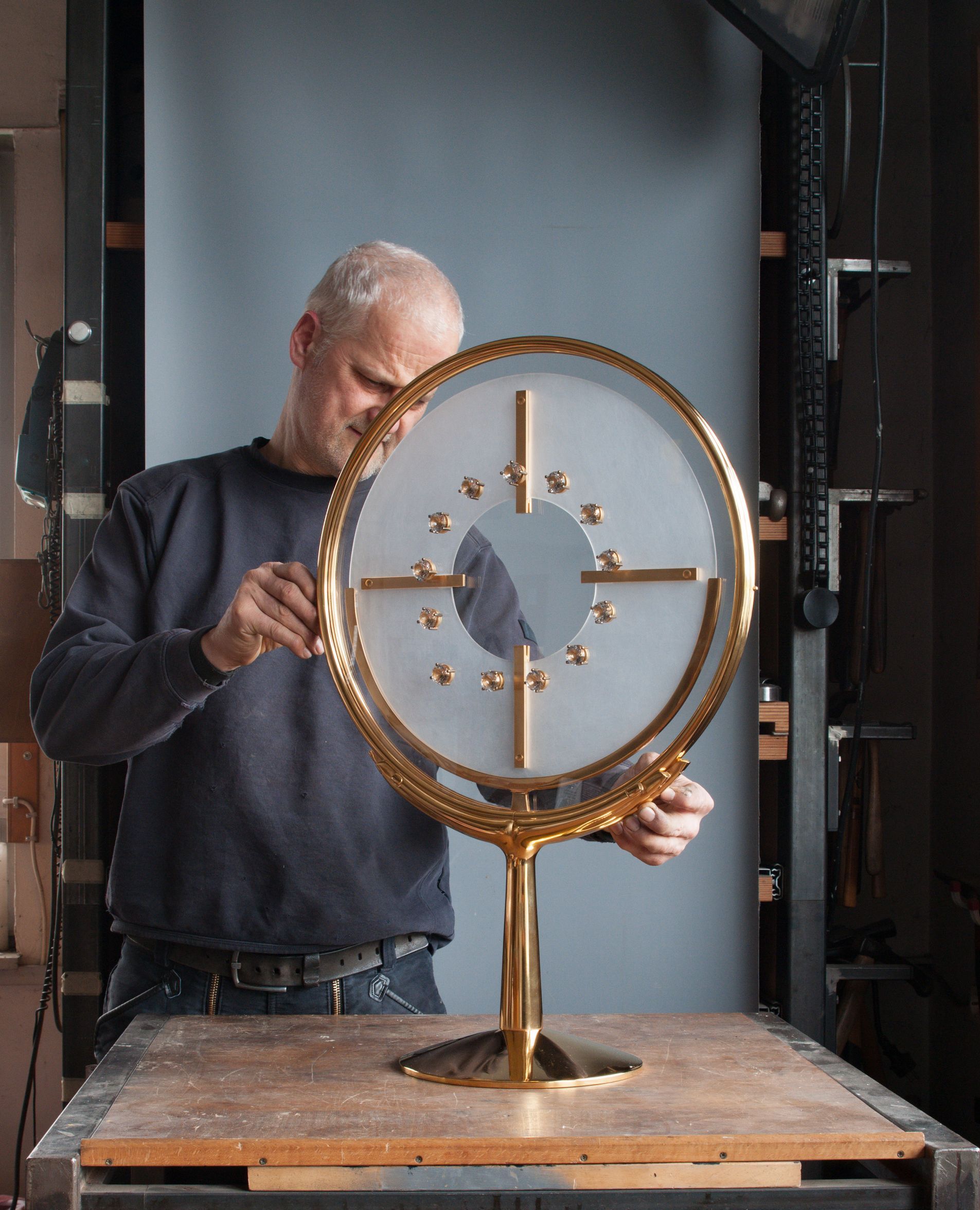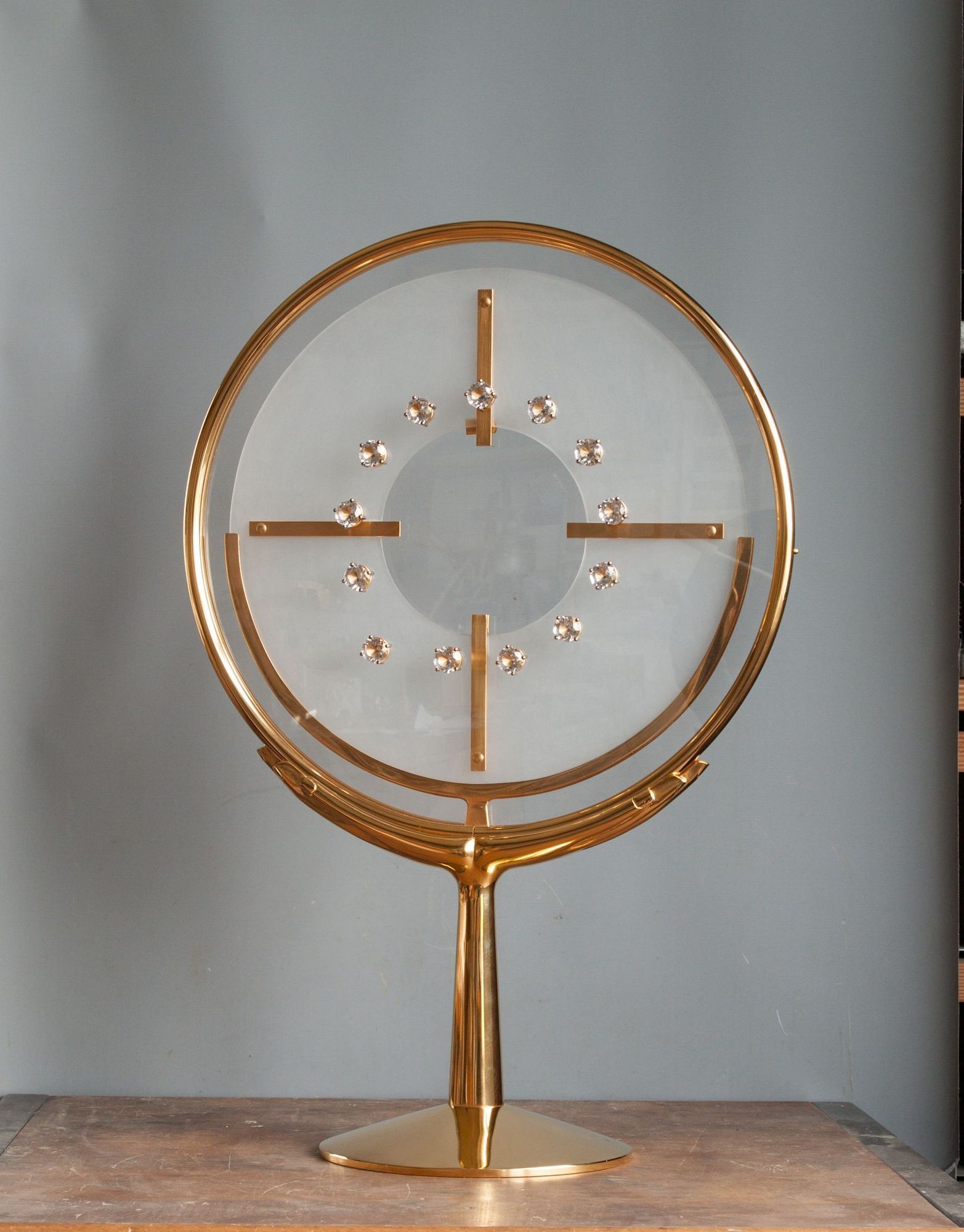 Monstranz Höhe 700mm, Messing vergoldet, 13 Bergkristalle